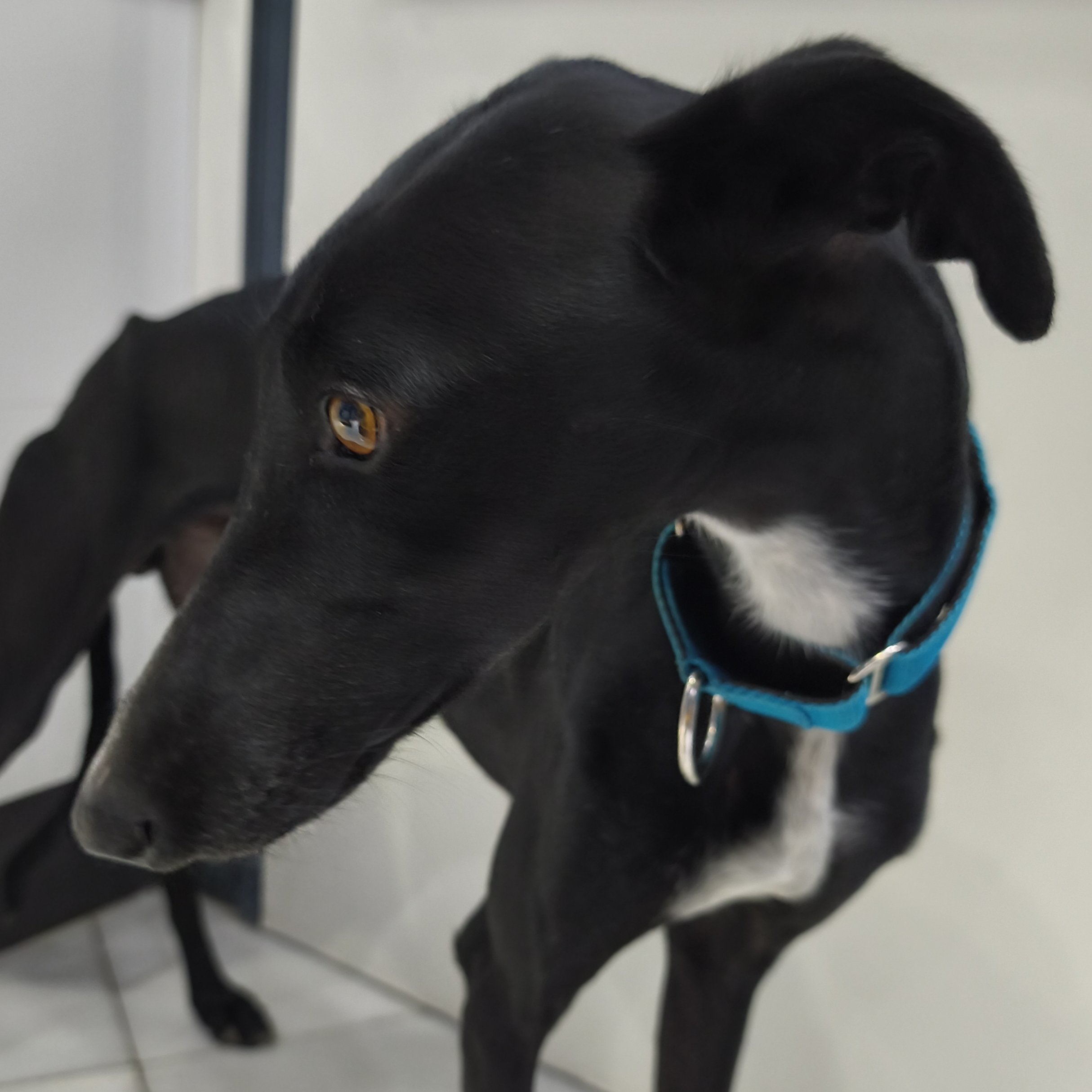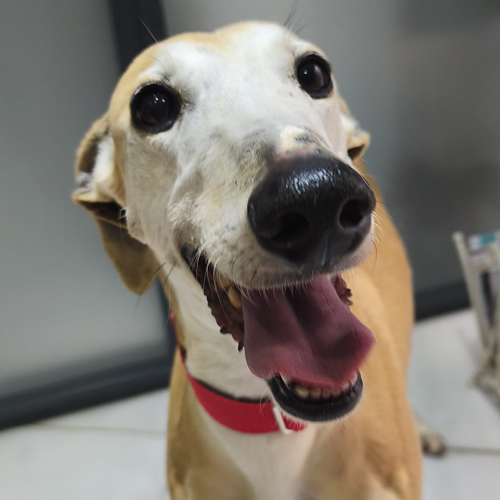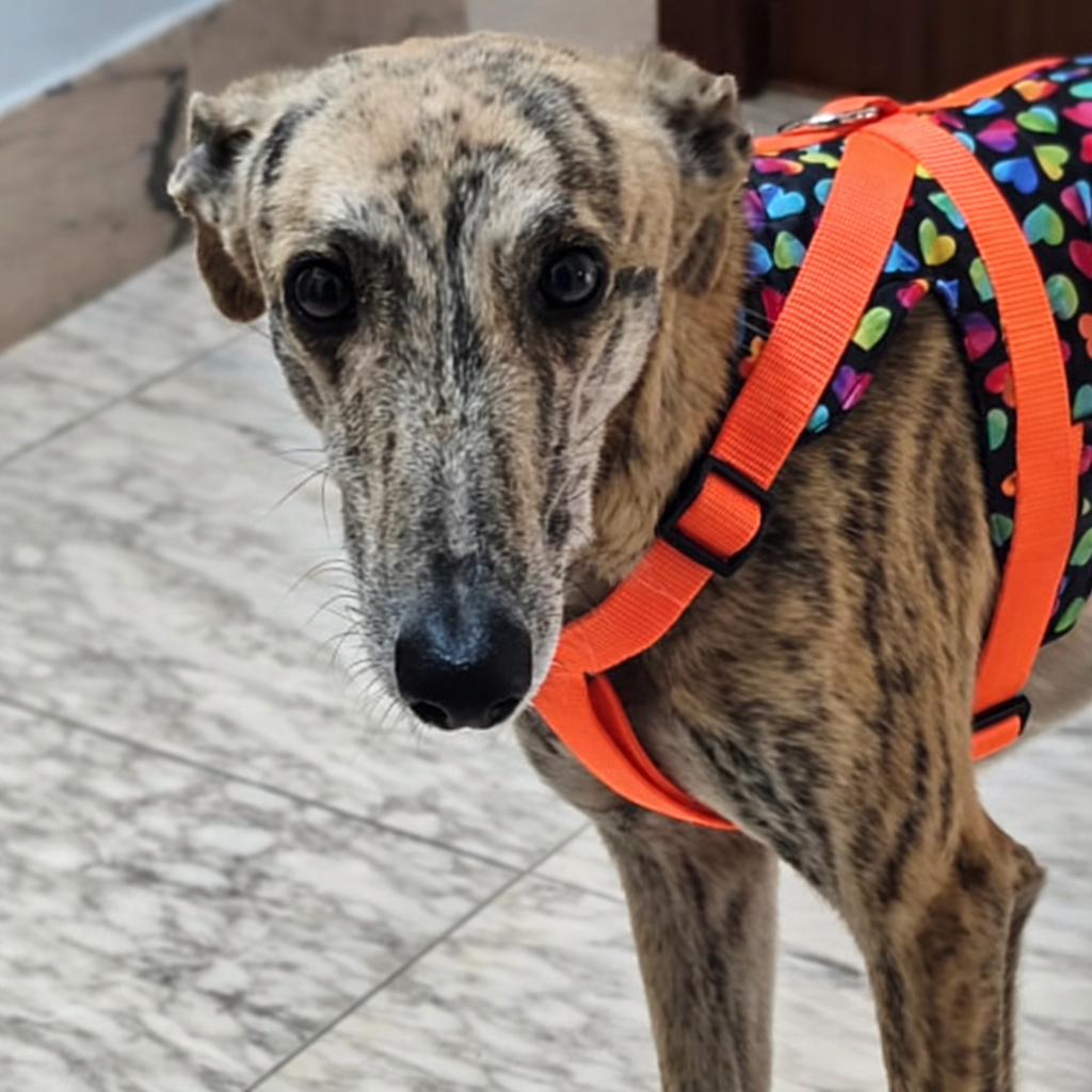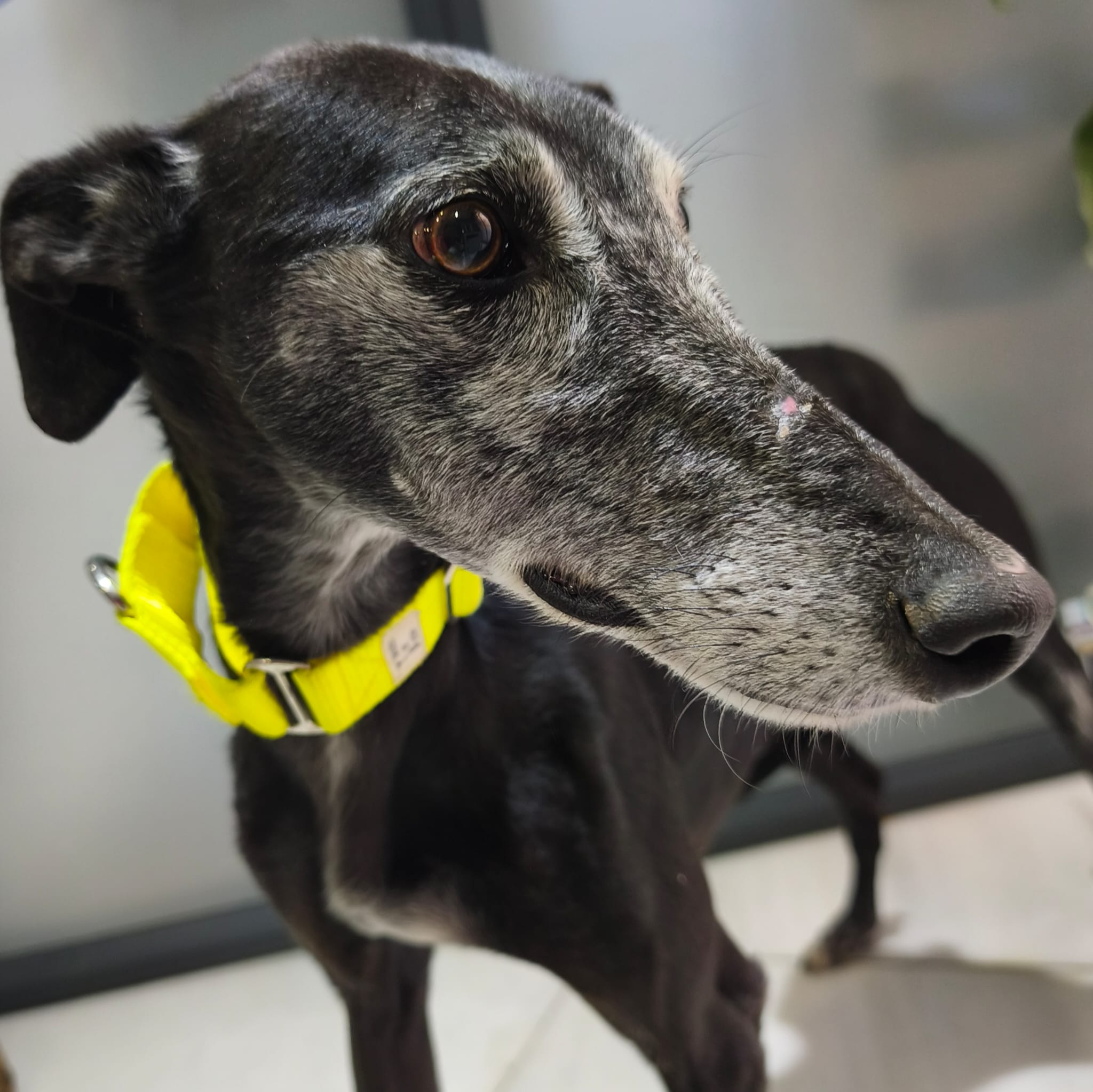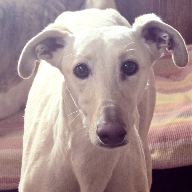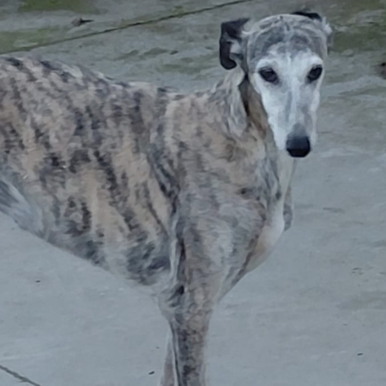 Es muy bueno, un poco tímido al principio. Aunque con todos los galgos hay que tener cuidado, con Voltor todavía más, porque a pesar de que no es muy miedoso, de primeras intenta escapar, sólo necesita tener confianza en su adoptante, es muy buen perro.